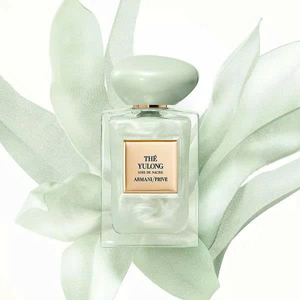 Hiếm có dòng nước hoa unisex mùi trà nào được lòng số đông như Giorgio Armani The Yulong Soie de Nacre. Chưa cần nói đến hương thơm, thiết kế của chai nước hoa này đã đủ sức chinh phục các tín đồ nhờ sắc xanh lá nhạt thời thượng, kết hợp với lớp nhũ ngọc trai xanh lấp lánh bên trong. Khi xịt lên da, sản phẩm để lại một lớp nhũ nhẹ sang trọng, tinh tế.
